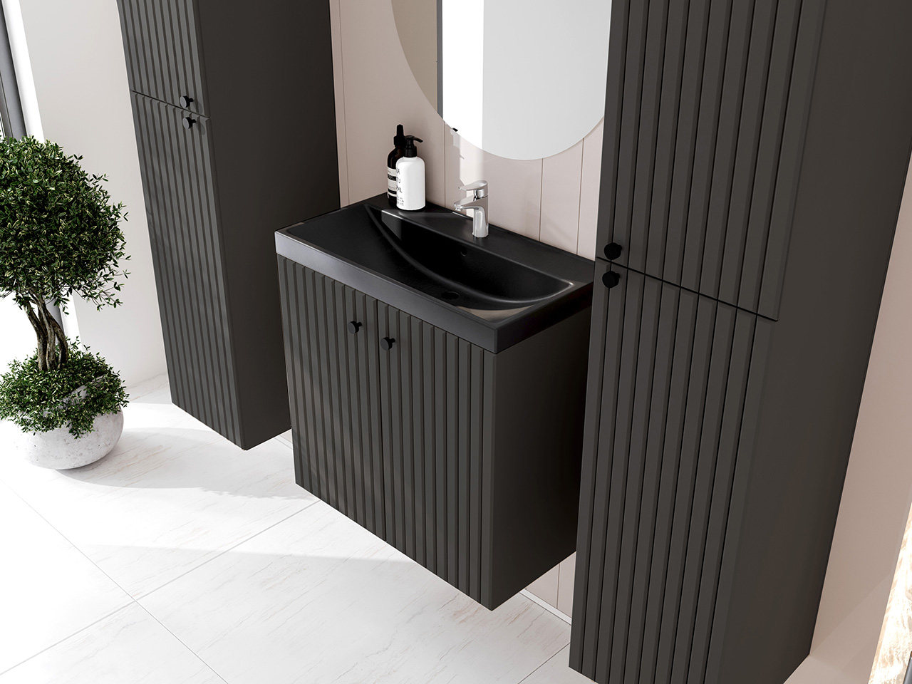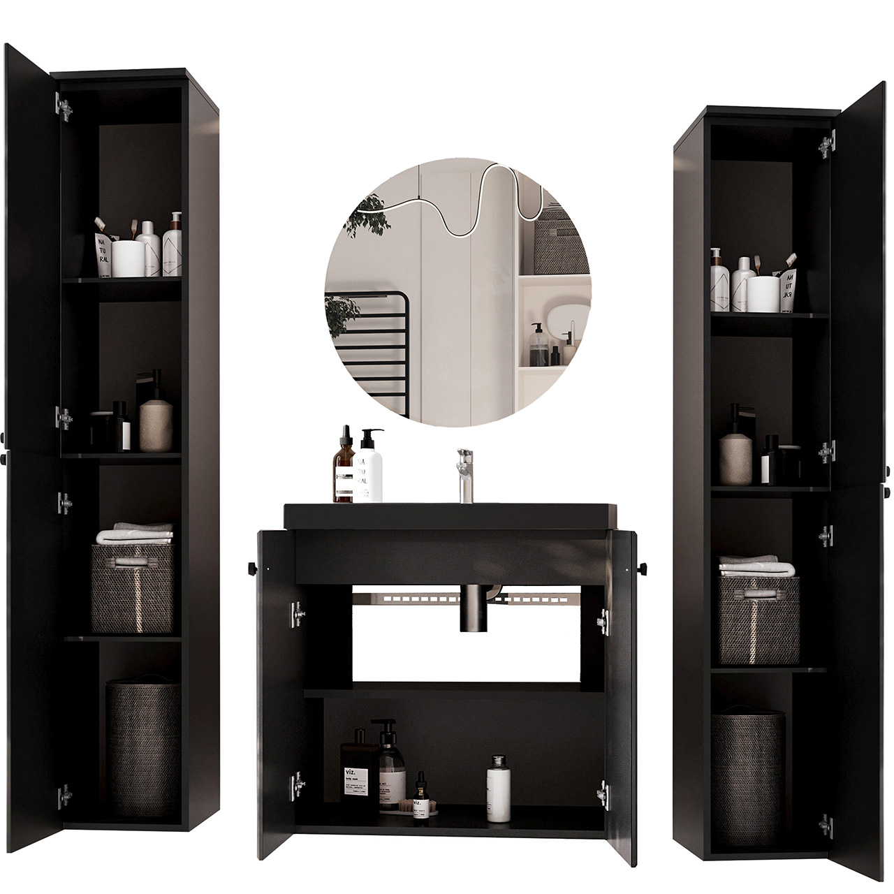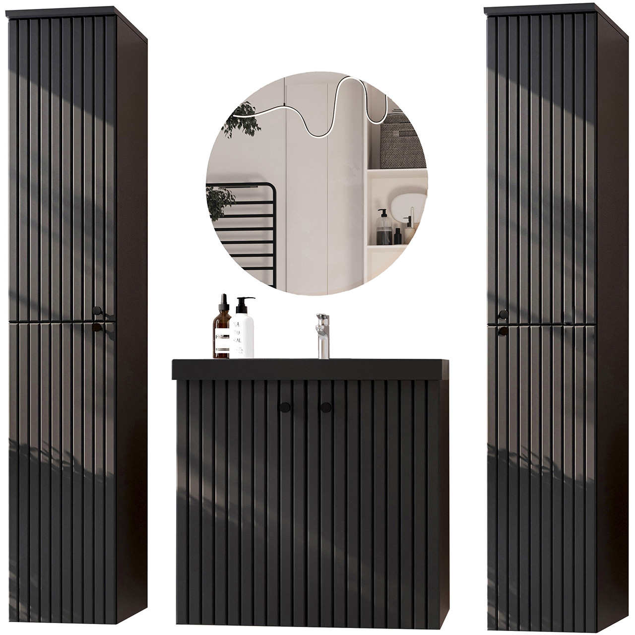 Mueble de baño ASTO 01 (30/162/32) x2 Mueble para lavabo ASTO 02 (60/58/36) Espejo redondo de baño MIR2 (60/60) |