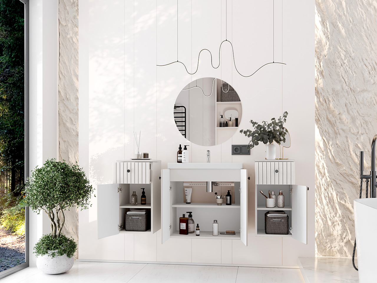Mueble para lavabo ASTO 02 (60/58/36) Mueble de baño ASTO 03 (30/60/32) x2 Espejo redondo de baño MIR2 (60/60) |