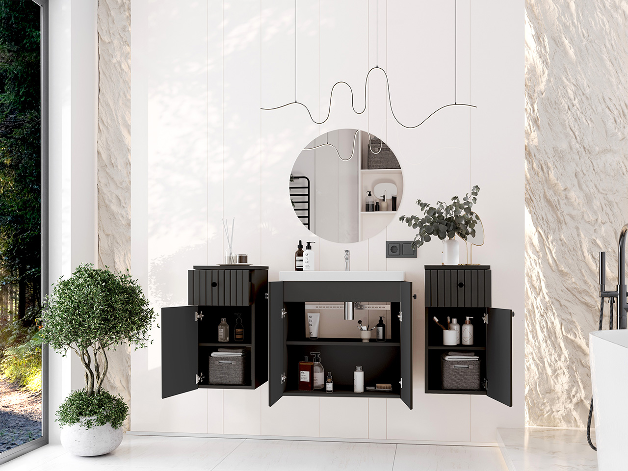 Mueble para lavabo ASTO 02 (60/58/36) Mueble de baño ASTO 03 (30/60/32) x2 Espejo redondo de baño MIR2 (60/60) |
