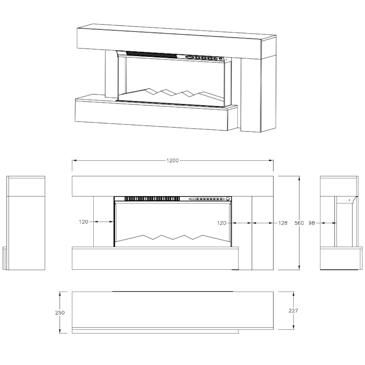 Ajustes de temperatura: 1000 W/2000 W Efectos de llama de 7 colores Efectos de brasas de 7 colores Protección térmica incluida Incluye control remoto de temperatura Mando Temporizador semanal (apertura de ventana/función ERP) Pantalla LCD Mando (datos mostrados en el control remoto) Controles táctiles en el panel frontal de cristal Imitación de madera de resina
