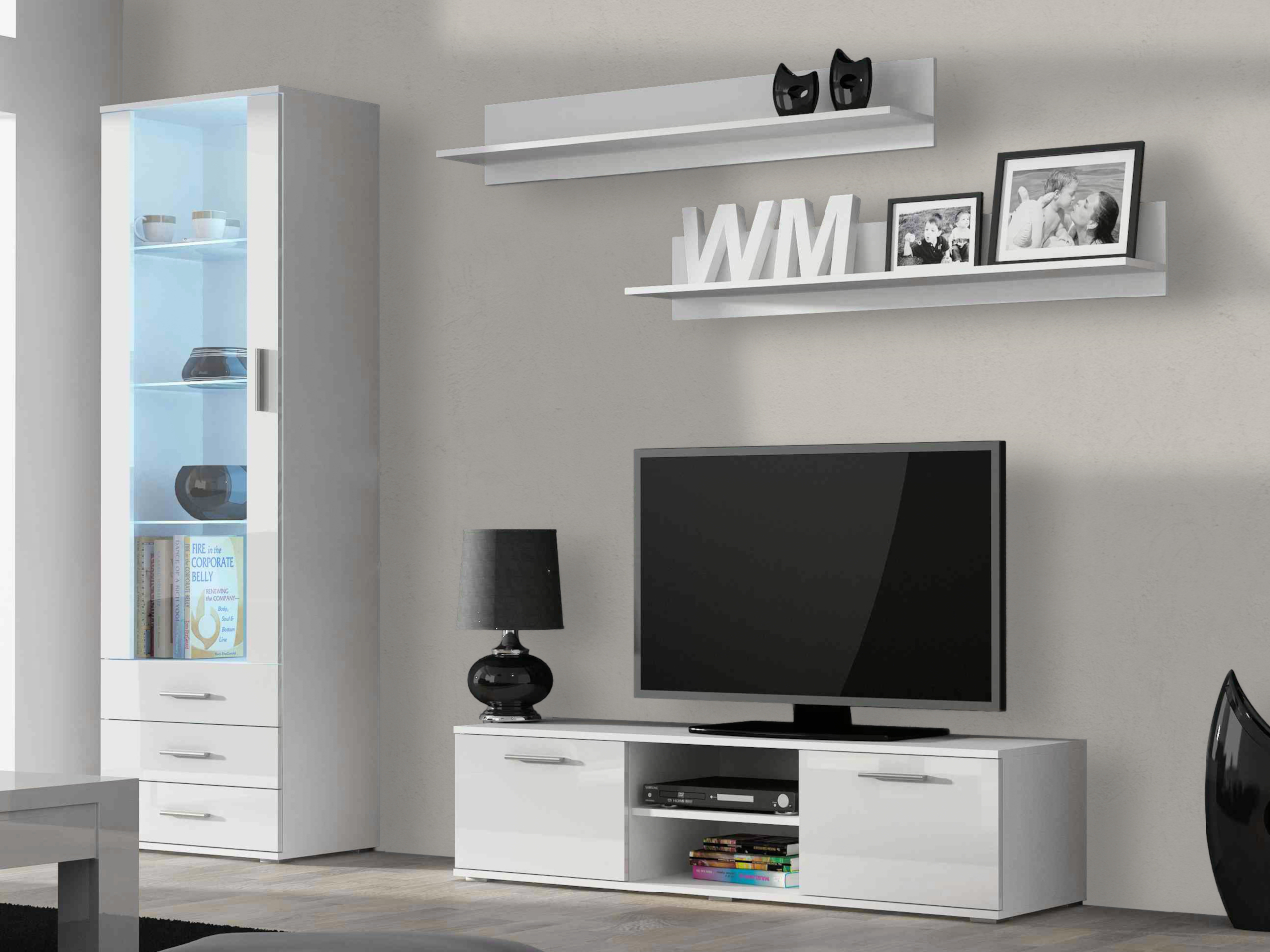 Vitrina alta SINDI SH1 (60/192/41) Cómoda TV 140 SINDI SH4 (140/37/43) Balda colgante SINDI SH5 (125/20/20)- 2 ud |